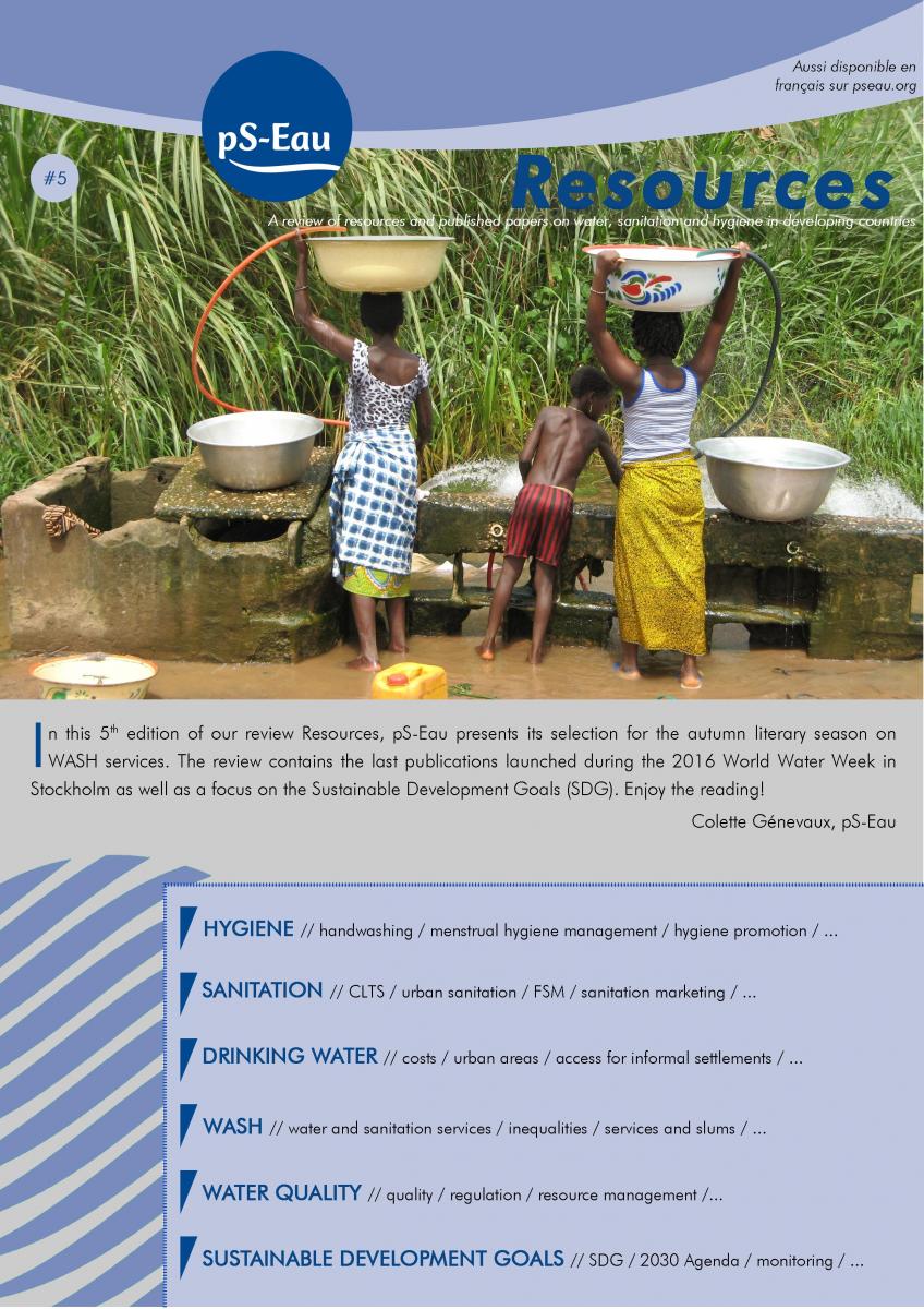 In this 5th edition of our review Resources, pS-Eau presents its selection for the autumn literary season on WASH services. The review contains some recent publications launched during the 2016 World Water Week in Stockholm as well as a focus on the Sustainable Development Goals (SDG).