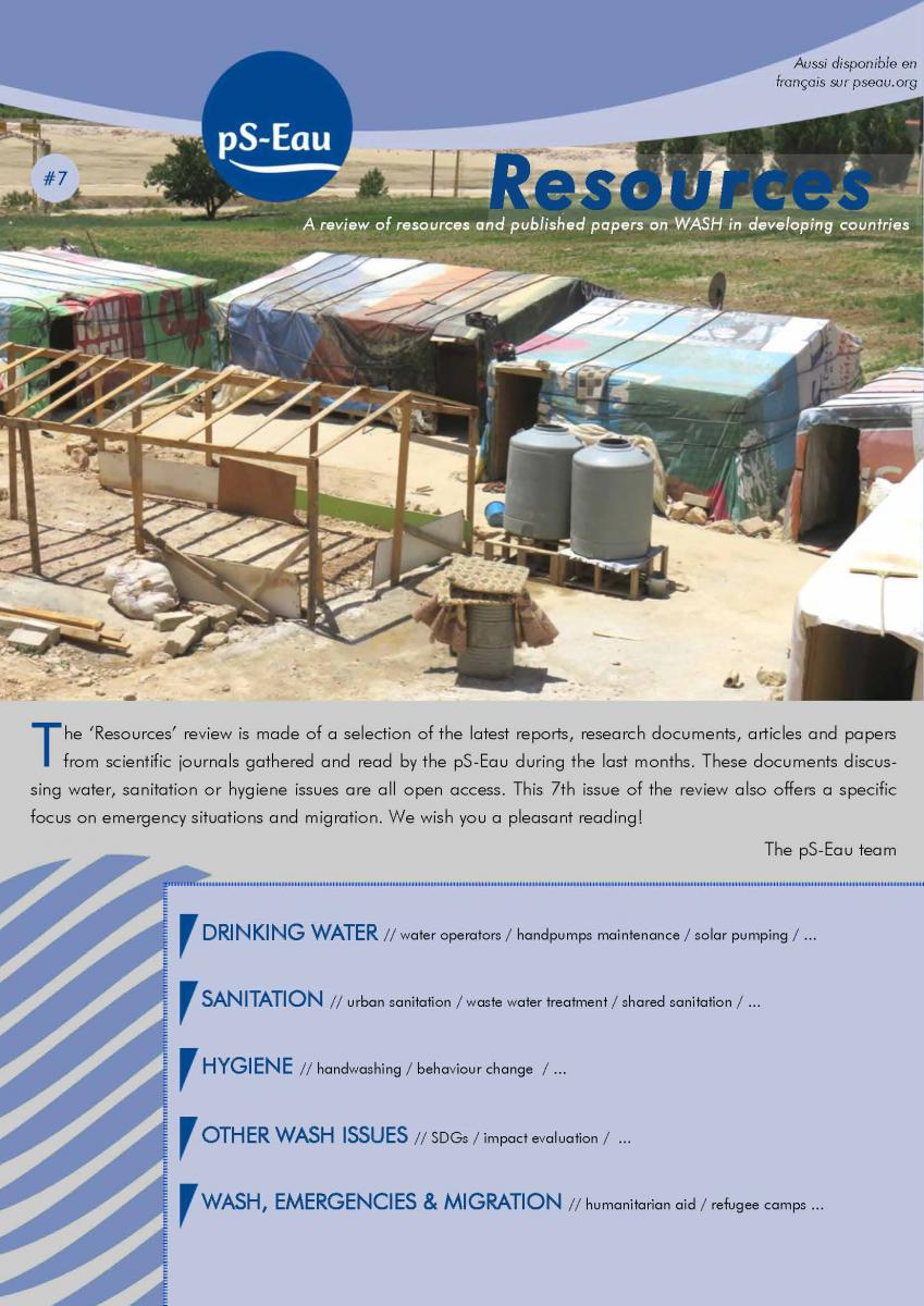 The 7th edition of Resources offers a selection of publication focused on water, sanitation and hygiene (WASH) services. In this selection, we also give a focus on emergencies and migrations in relation to WASH services.