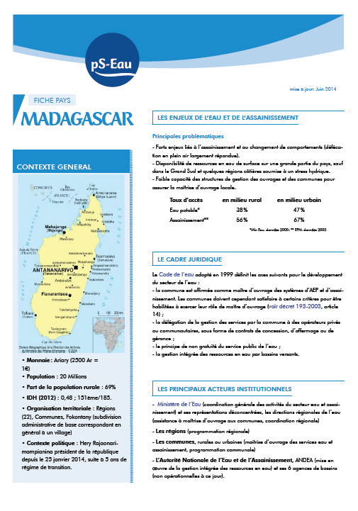 vez la synthèse des informations sur le secteur de l'eau à Madagascar sur la Fiche Pays