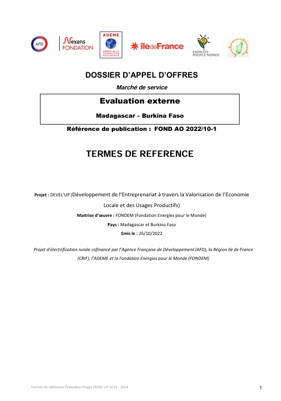 Grâce aux projets RESOUTH (2009-2011) et BOREALE (2013-2017) dans le sud de Madagascar (régions d'Androy et d'Anosy), 8 localités rurales bénéficient aujourd'hui d'un service d'électricité de qualité, basé sur les énergies renouvelables et géré par des opérateurs locaux. De même, le projet ENVOL a permis à 2 autres localités d'accéder à l'électricité fin 2020.
