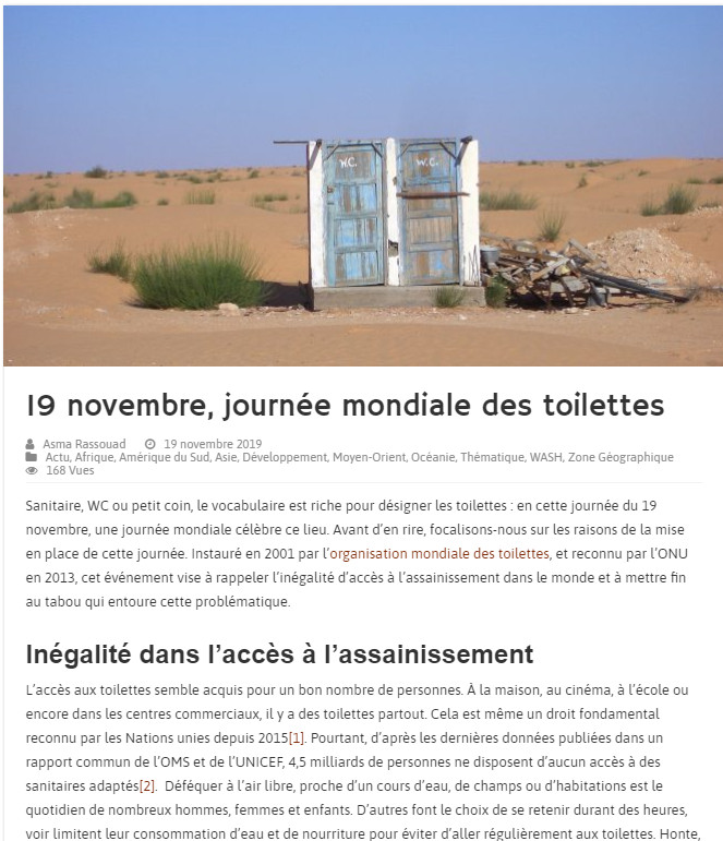 19 novembre, journée mondiale des toilettes