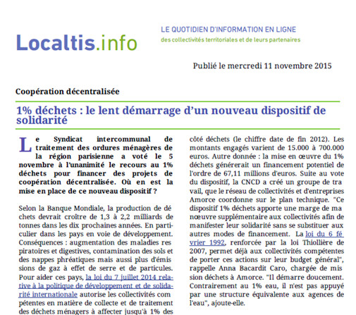 1% solidaire pour l'eau: collectivités locales votre action compte!