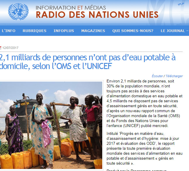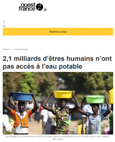 2,1 milliards d'êtres humains n'ont pas accès à l'eau potable