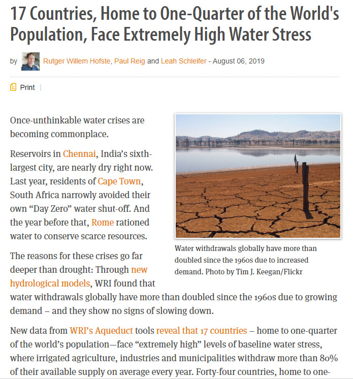 17 Countries, Home to One-Quarter of the World's Population, Face Extremely High Water Stress