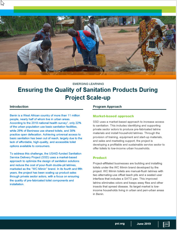 Ensuring the Quality of Sanitation Products During Project Scale-up