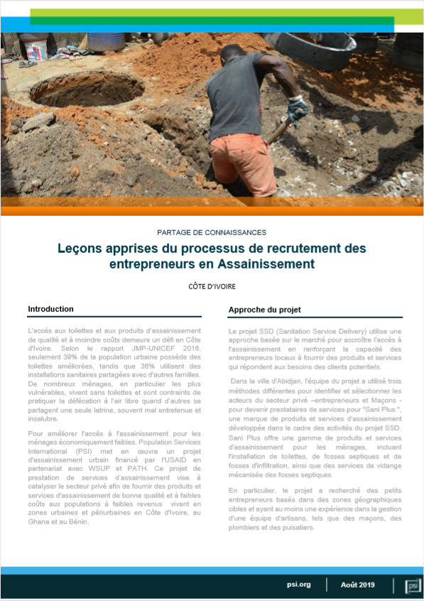 Leçons apprises du processus de recrutement des entrepreneurs en Assainissement