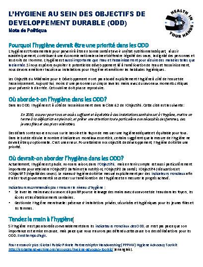 L'Hygiène au sein des Objectifs de développement durable (ODD): Note de Politique