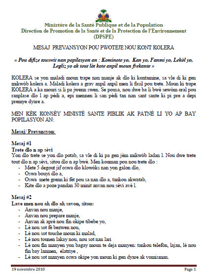 Messages radiophoniques de prévention contre le choléra