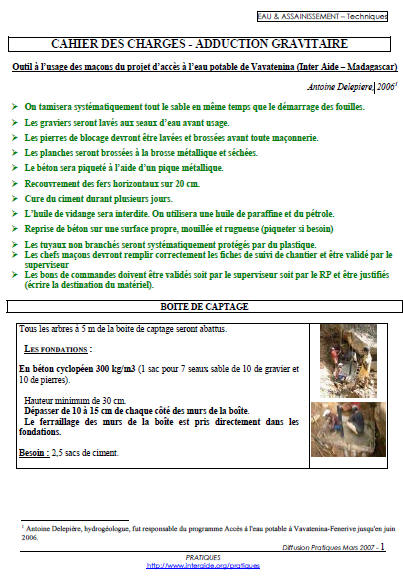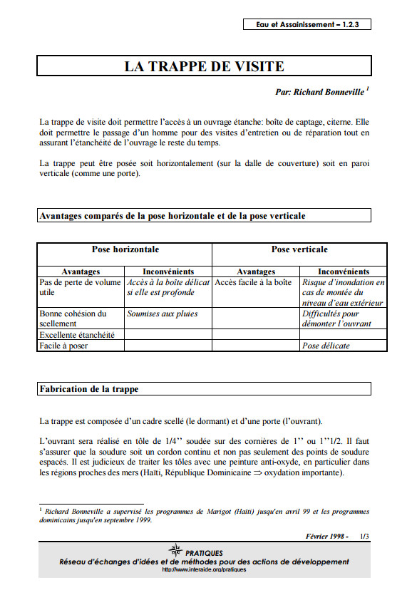 Guide pratique pour le captage de source et la construction de petits réseaux - chaîne des montagnes noires, Haïti