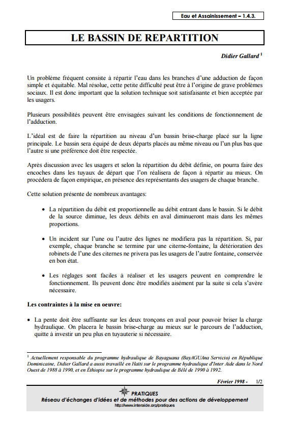 Adduction - Le bassin de répartition