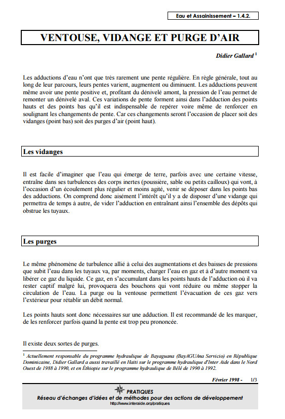 Adduction - Ventouses, vidanges et purges