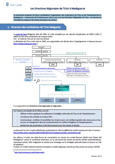 Les Directions Régionales de l'EAU à Madagascar