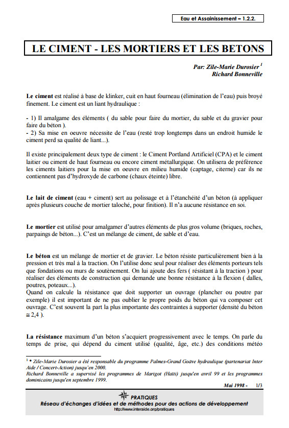 Le ciment, les mortiers et les bétons
