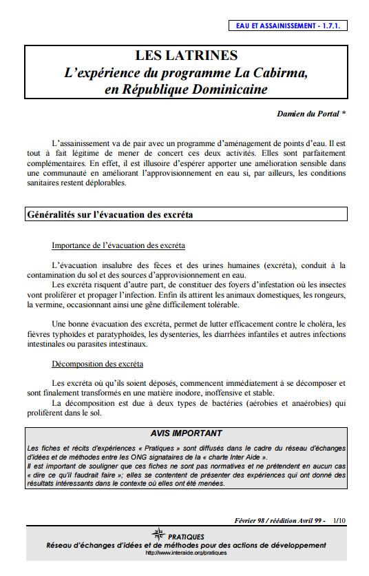 Les latrines, l'expérience de La Cabirma, République Dominicaine