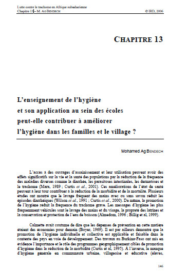 L'enseignement de l'hygiène et son application au sein des écoles peut-elle contribuer à améliorer l'hygiène dans les familles et le village ? article - 2006 Ed. IRD - Marseille |