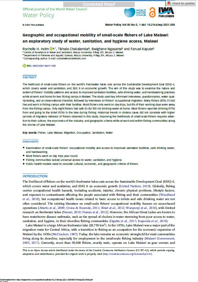 Geographic and occupational mobility of small-scale fishers of Lake Malawi: an exploratory study of water, sanitation, and hygiene access, Malawi