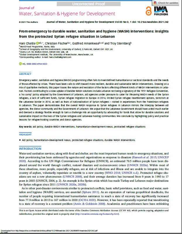 From emergency to durable water, sanitation and hygiene (WASH) interventions: insights from the protracted Syrian refugee situation in Lebanon