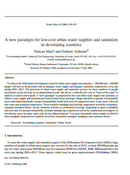 A new paradigm for low cost urban water supplies and sanitation in developing countries