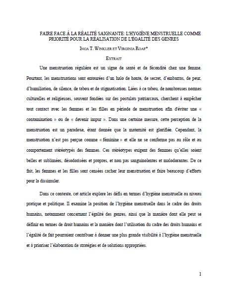 Faire face à la réalité saignante: L'hygiène menstruelle comme priorité pour la réalisation de l'égalité des genres