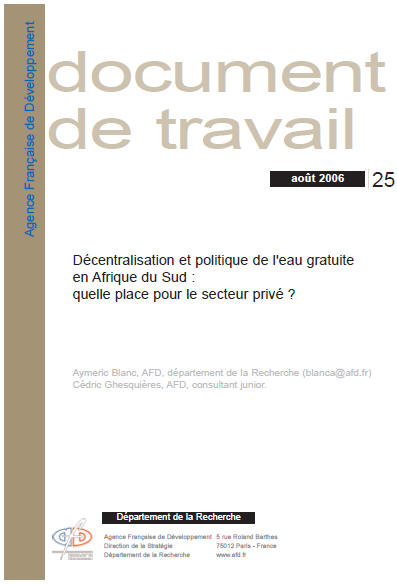Décentralisation et politique de l'eau gratuite en Afrique du Sud : Quelle place pour le secteur privé ?