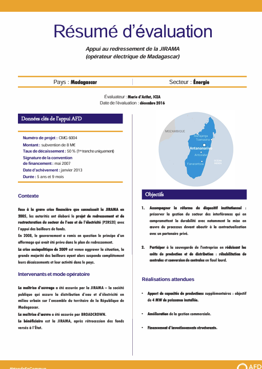 Résumé d'évaluation - Appui au redressement de la Jirama