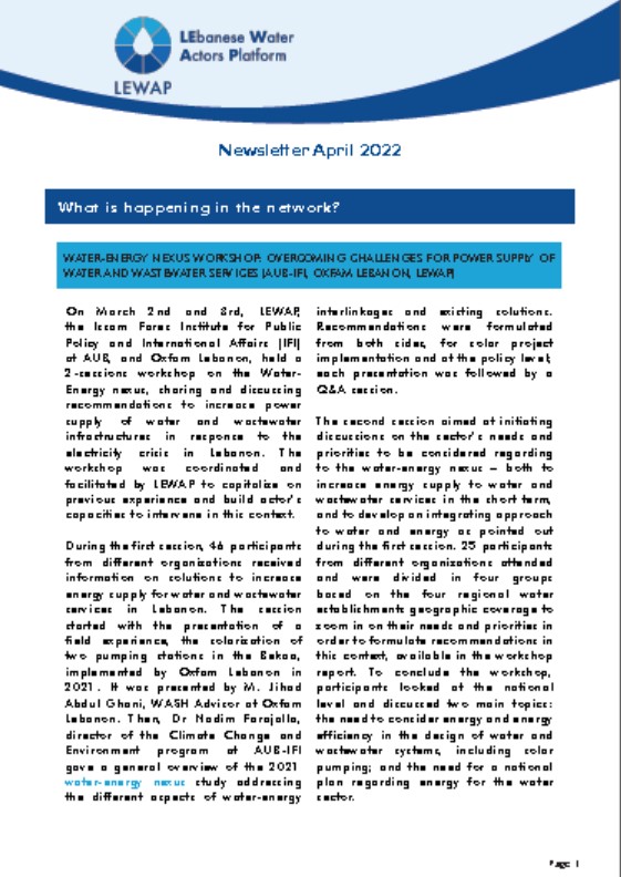 Newsletter LEWAP - Avril 2022