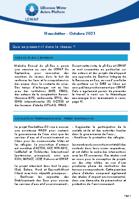 Newsletter LEWAP - Octobre 2021