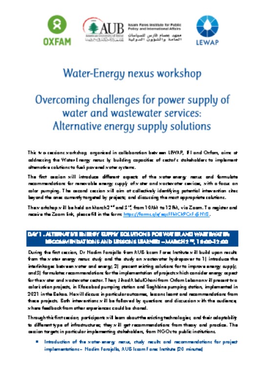 Water-energy nexus in Lebanon - workshop presentation