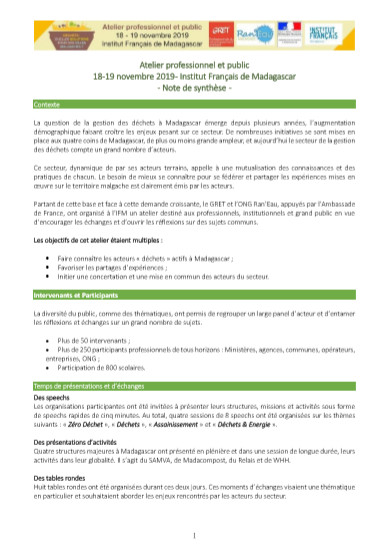 Atelier déchets IFM - Note de synthèse