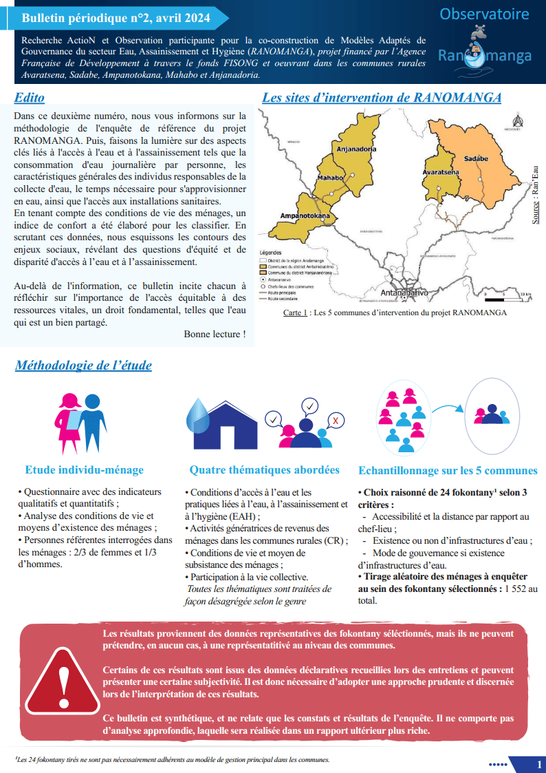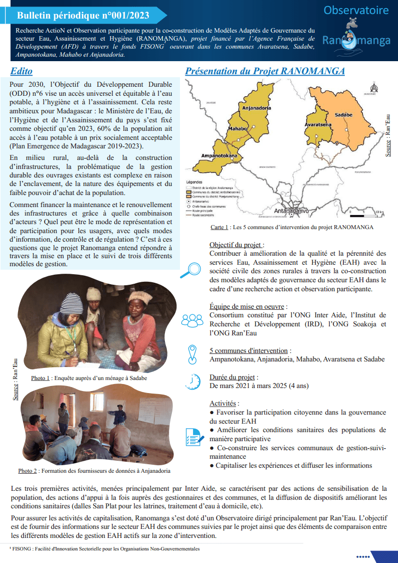 Bulletin N°1 de l'Observatoire Ranomanga