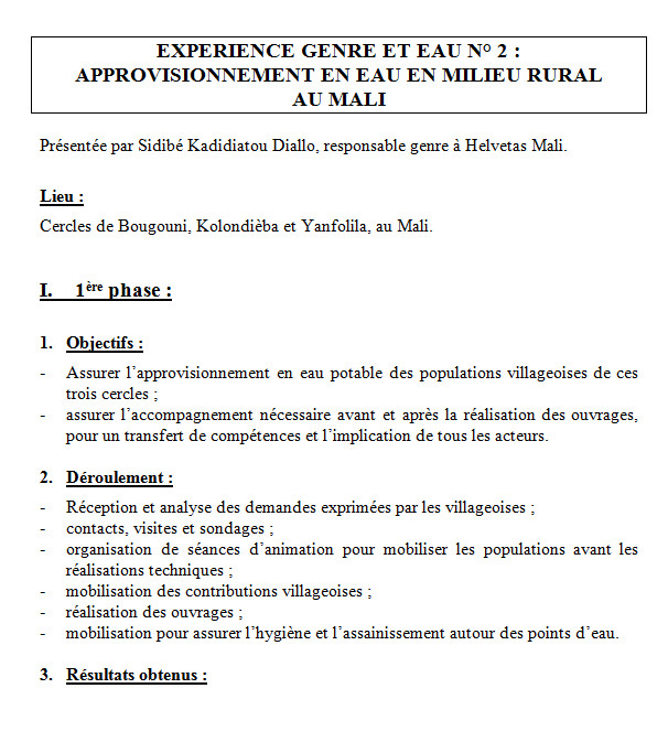 Expérience genre et eau n° 2 - Etude de cas diffusée lors de la conférence électronique Genre et Eau