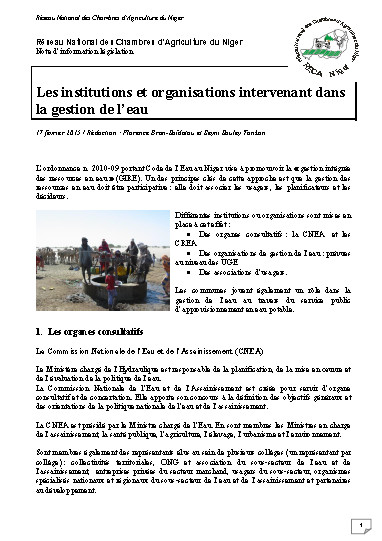 Les institutions et organisations intervenant dans