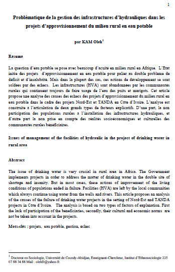 Problématique de la gestion des infrastructures d'hydrauliques dans les projets d'approvisionnement du milieu rural en eau potable