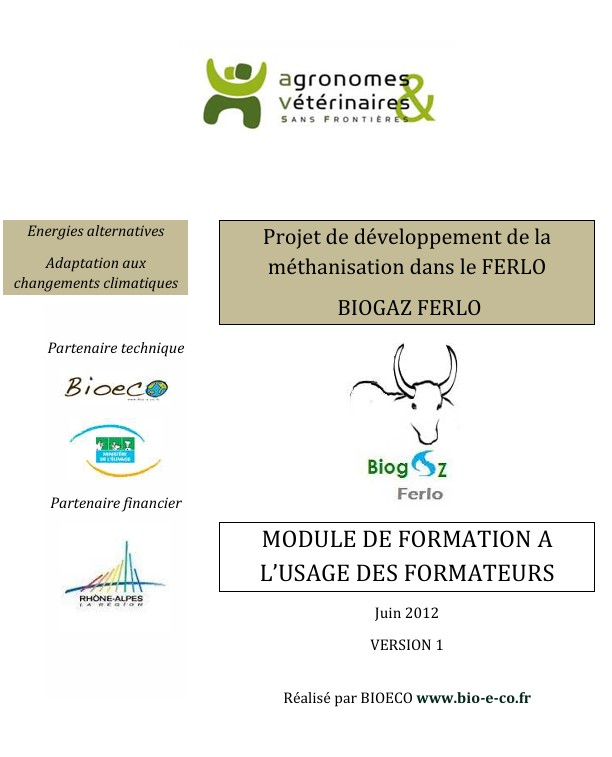 Projet de développement de la méthanisation dans le FERLO BIOGAZ FERLO : Module de formation à l'usage des formateurs