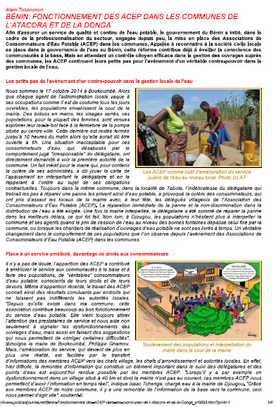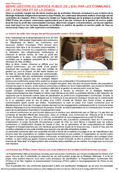 Bénin: Gestion publique de l'eau dans les communes de l'Atacora et de la Donga