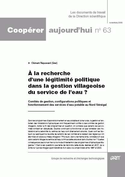 À la recherche d'une légitimité politique dans la gestion villageoise du service de l'eau ?