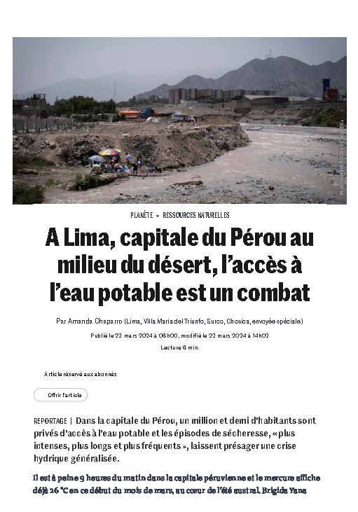 A Lima, capitale du Pérou au milieu du désert, l'accès à l'eau potable est un combat