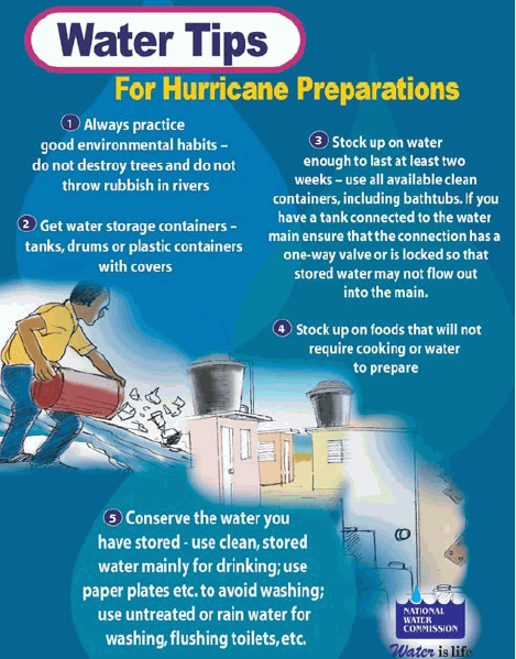 Water Tips for Hurricane preparations affiche, aide visuelle - 2006 - 2 pp Ed. NWC - Kingston |