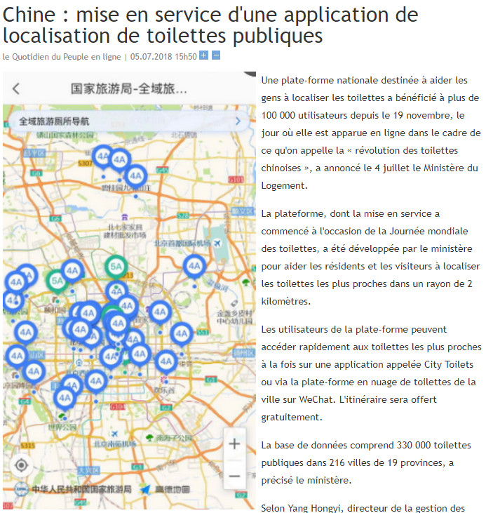 Chine : mise en service d'une application de localisation de toilettes publiques