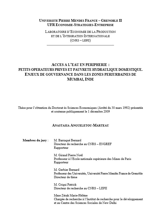 Accès à l'eau en périphérie : petits opérateurs privés et pauvreté hydraulique domestique. Enjeux de gouvernance dans les zones périurbaines de Mumbai, Inde