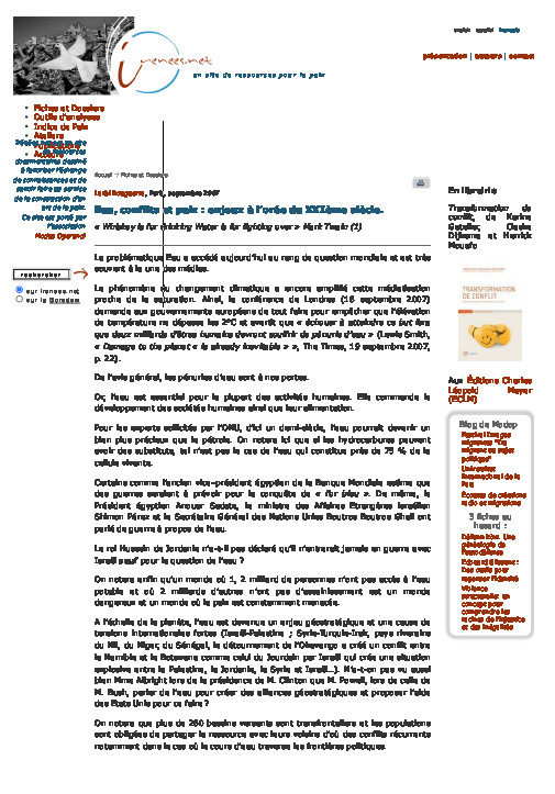 Eau, conflits et paix : enjeux à l'orée du XXIème siècle
