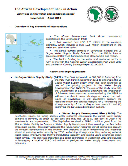Activité dans le secteur de l'eau et l'assainissement aux Seychelles