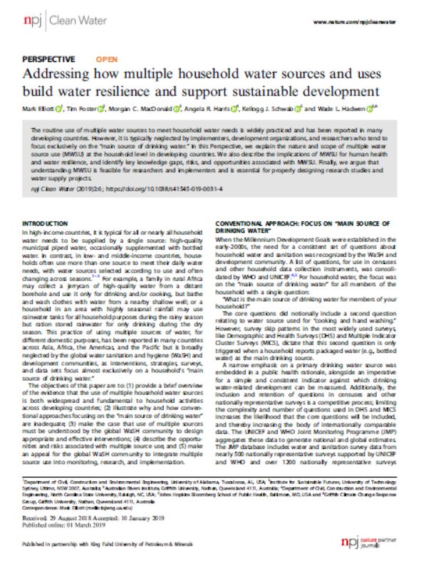 Addressing how multiple household water sources and uses build water resilience and support sustainable development