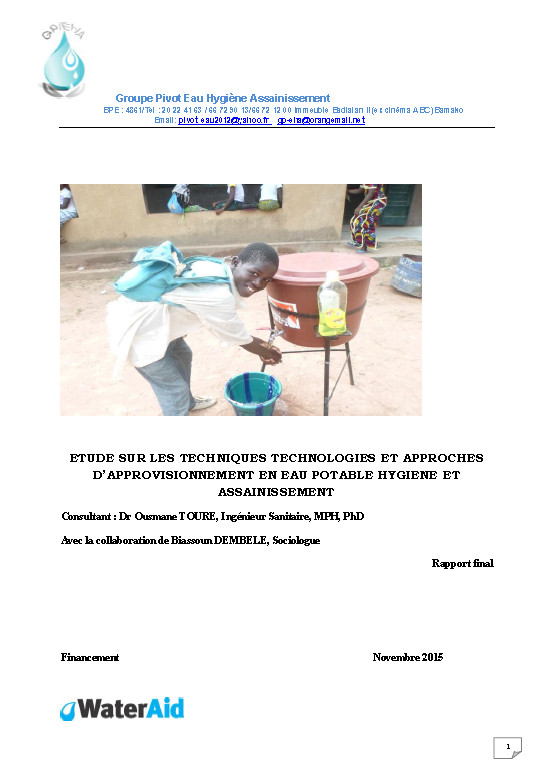 Étude sur les techniques technologies et approches d'approvisionnement en eau potable hygiène et assainissement