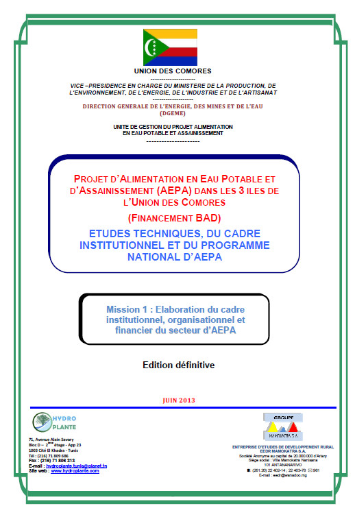 Etudes techniques, du cadre institutionnel et du programme national d'AEPA