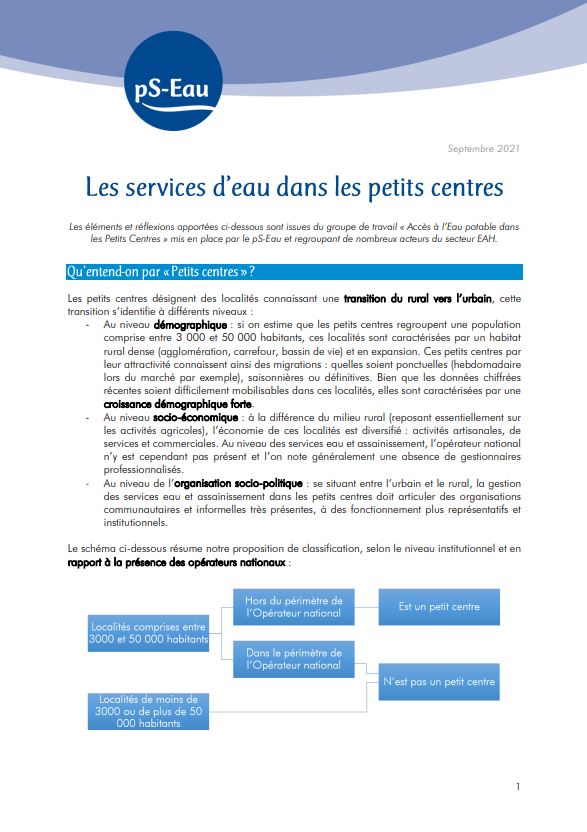 les Petits Centres » mis en place par le pS-Eau et regroupant de nombreux acteurs du secteur EAH
