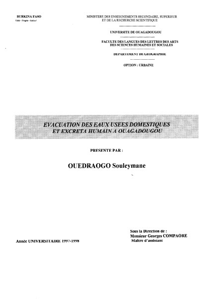 Evacuation des eaux usées domestiques et excréta humain à Ouagadougou