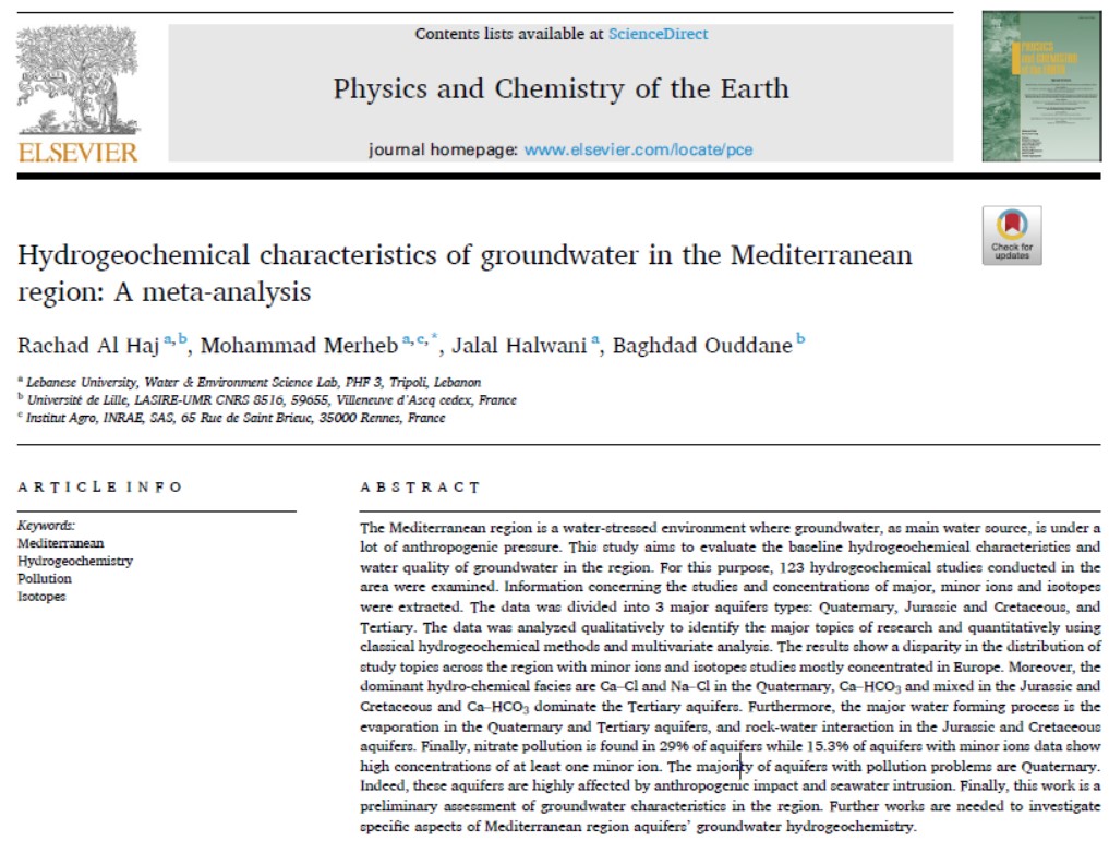 This work is a preliminary assessment of groundwater characteristics in the region. Further works are needed to investigate specific aspects of Mediterranean region aquifers’ groundwater hydrogeochemistry.