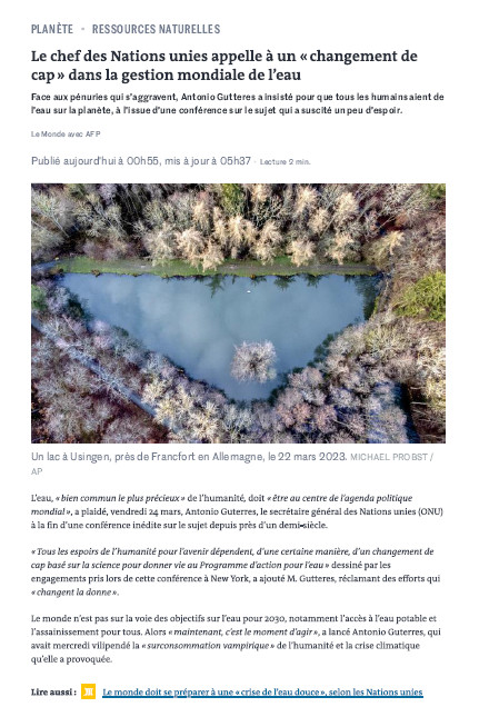 Le chef des Nations unies appelle à un « changement de cap » dans la gestion mondiale de l'eau