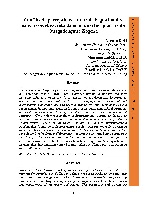 Conflits de perceptions autour de la gestion des eaux usées et excréta dans un quartier planifie de Ouagadougou : Zogona | ||||||||